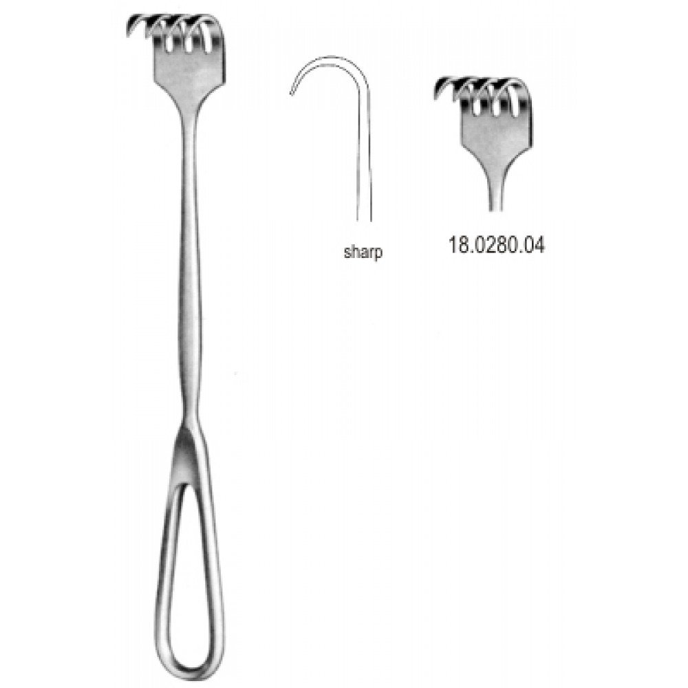 Volkmann Retractor 4.prong blunt 23cm